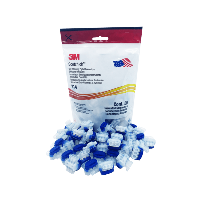 Електричні з'єднувачі 3M Scotchlok з врізним контактом призначені для з'єднання або приєднання силового дроту (відведення) до магістрального проводу та ізоляції з'єднання. З'єднувачі розраховані на використання з мідними силовими кабелями/проводами, однодротовими або багатодротовими, гнучкими або жорсткими.