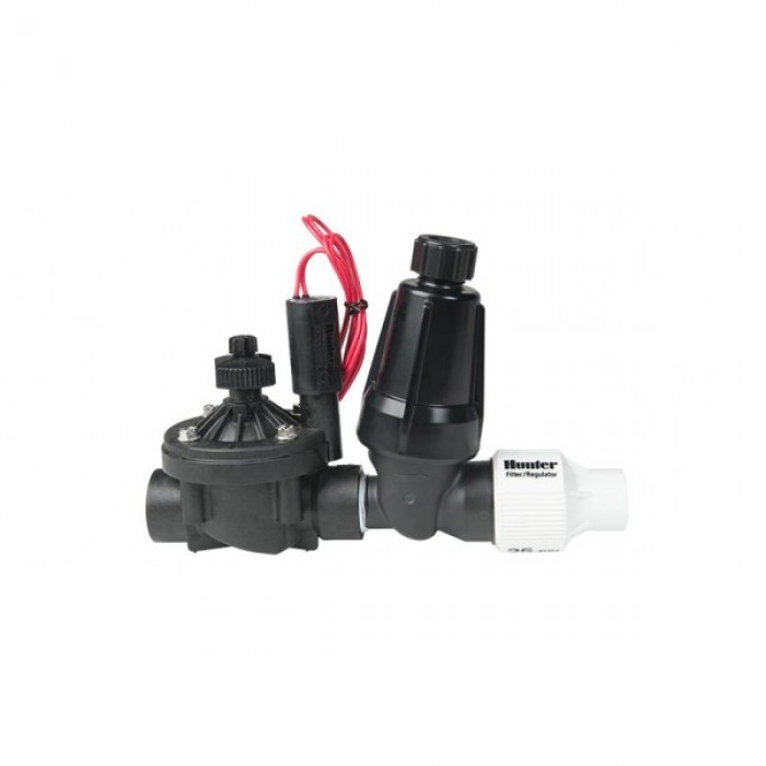 Комплект Hunter PCZ-101-40 представляє собою зібрану на заводі конструкцію, що складається з популярного електромагнітного клапана PGV, фільтра та регулятора тиску, призначену для керування зоною крапельного зрошення. Клапани PGV виготовляються з високоякісних матеріалів, кришка корпусу виготовлена з армованого скловолокном нейлону. Конструкція включає фільтр з нержавіючої сталі, промивальну кришку для очищення фільтра та регулятор тиску, для підтримки тиску у системі на рівні 2,8 бар.