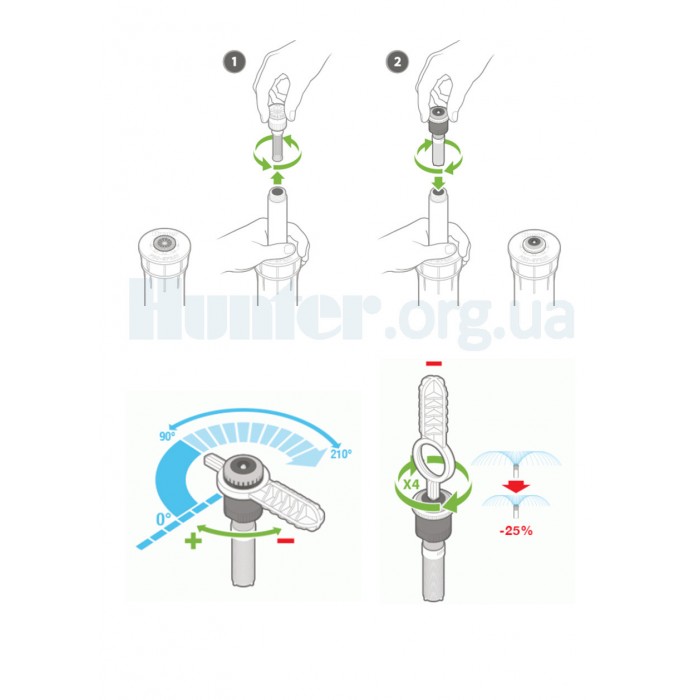 Гнучкість і Налаштування: Форсунка MP Rotator надає можливість налаштовувати дальність і кут розпилення води, що дозволяє точно відповідати потребам вашого ландшафту. Ви можете легко налаштувати полив для різних рослин і газонів на вашій ділянці.