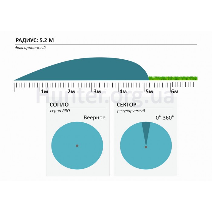 - Радіус поливу: 5,2 метра