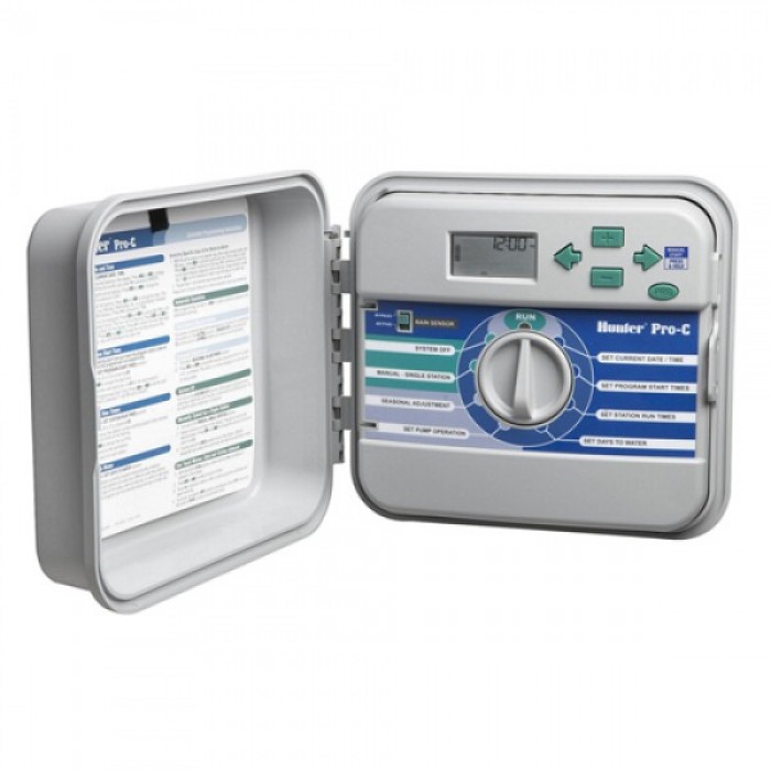 Контролер керування автоматичною системою поливу Hunter PCC-1201-E призначений для роботи в системах орошення. Він керує електромагнітними клапанами і може контролювати до 12 зон. Виконання пристрою передбачає розташування зовні приміщень, і цю технологічну та конструкційну особливість слід враховувати при розміщенні і монтажі таймера.