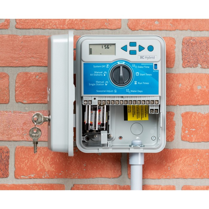 Пульт керування XC Hybrid забезпечує тривалу роботу без використання електроживлення з розетки. Обладнаний всіма передовими функціями пультів XC, XC Hybrid керує соленоїдами, отримуючи живлення від батарей або 24В трансформатора. Підходить для установки як всередині приміщення, так і зовні. Модель XC Hybrid доступна на 12 зон в пластиковому корпусі. Це означає, що цей пульт керування підходить як для присадибних ділянок, так і для комерційних об'єктів. Невеликі присадибні ділянки, парки, сади, розділові смуги автострад і прибудинкові ділянки всередині автомобільних доріг з круговим рухом - ось неповний перелік можливих сфер застосування XC Hybrid. Завдяки функції збереження налаштувань в пам'яті Easy Retrieve та енергонезалежної пам'яті, користувач має можливість відновити будь-яку програму поливу.
