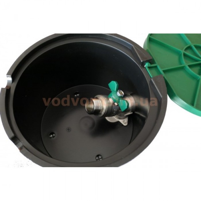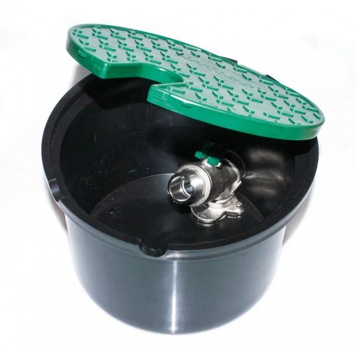 Зелена кришка, яка збігається з кольором трави, не порушує зовнішній вигляд і не виділяється на газоні. Технологічний отвір у кришці для виходу шланга дозволяє використовувати коробку з водяною розеткою Irritec з закритою кришкою. У нижній частині коробки для поливу є дренажні отвори для стоку води.